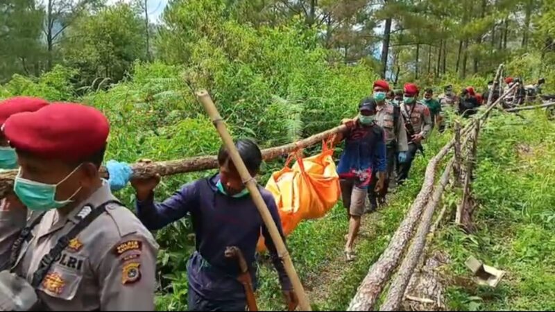 Mengingat lokasi penemuan berada di kawasan pegunungan dengan medan yang sulit dijangkau kendaraan, kedua jasad korban dievakuasi dengan cara dipikul oleh personel kepolisian bersama warga setempat menuju titik yang dapat dilalui kendaraan, sebelum selanjutnya dibawa ke RSUD Muhammad Ali Kasim.